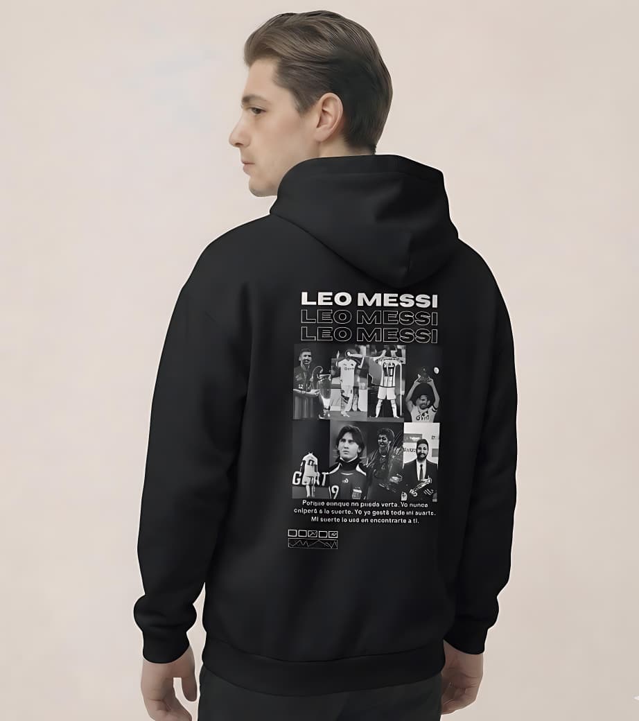 Featuring a collage of Messi’s iconic moments on the back, this 400 GSM oversized hoodie delivers warmth, comfort, and pure fan energy. Finished with a minimal signature print on the front.